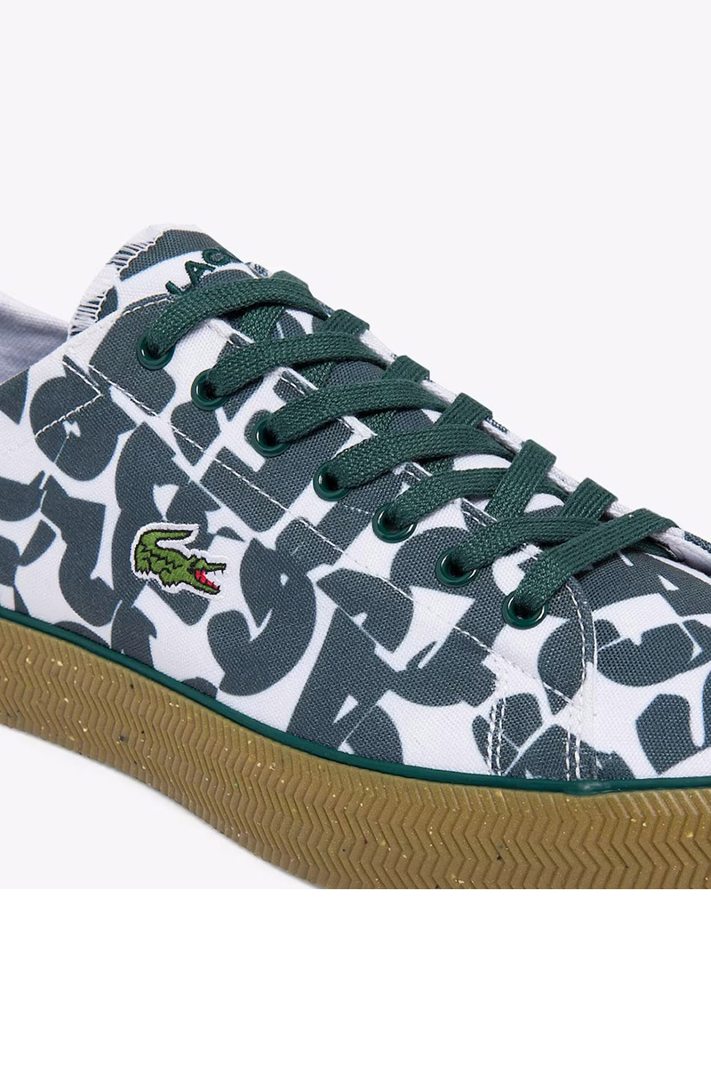 - Statement style fuses with heritage detailing in the Gripshot. Recycled polyester canvas uppers in a bold graphic print are inspired by Lacoste apparel and are elevated with a synthetic heel patch. This lace-up sneaker features chunky vulcanised gum soles with a herringbone pattern for a retro aesthetic. Branded lettering on the tongue and a green embroidered crocodile on the quarter add signature appeal.