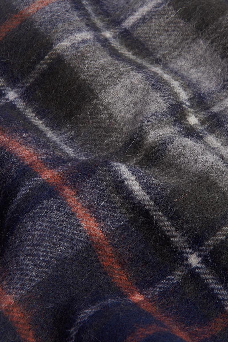 - Featuring an all-over checked pattern, the multi-functional accessory is finished with a classic tasselled hem.