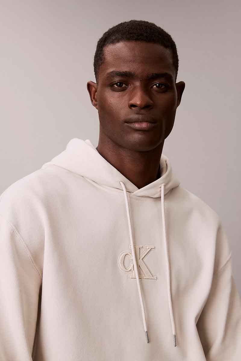 Calvin Klein Φούτερ Fleece Monogram Logo Patch Relaxed Hoodie Ανδρικό Μπεζ