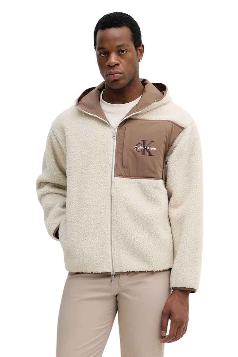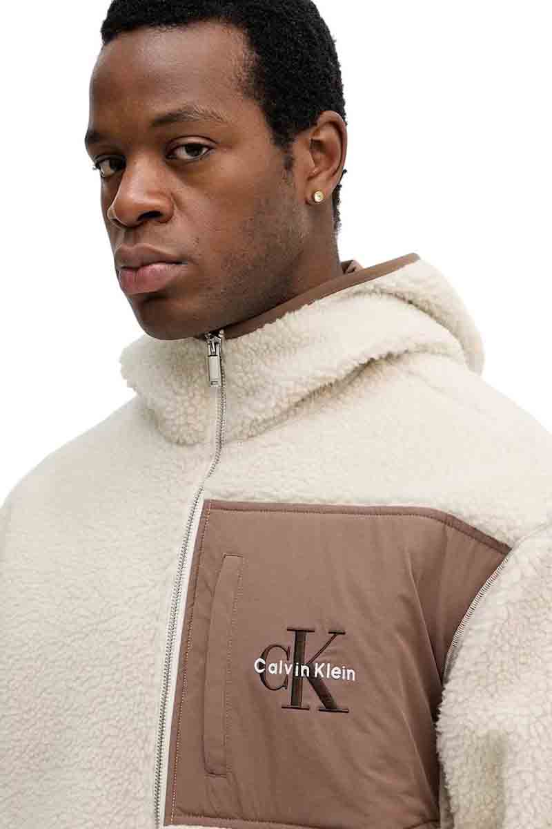 Calvin Klein Μπουφάν Sherpa Monogram Logo Relaxed Zip Hoodie Ανδρικό Multicolor