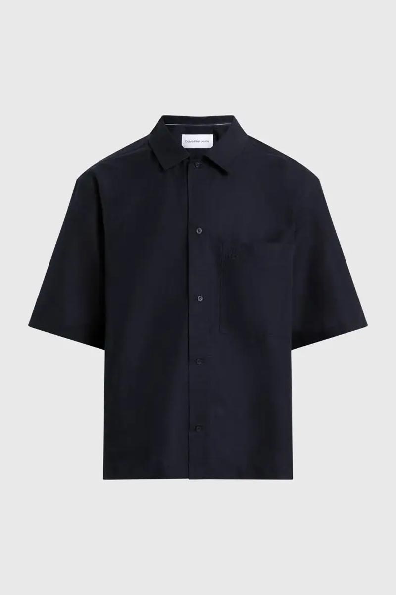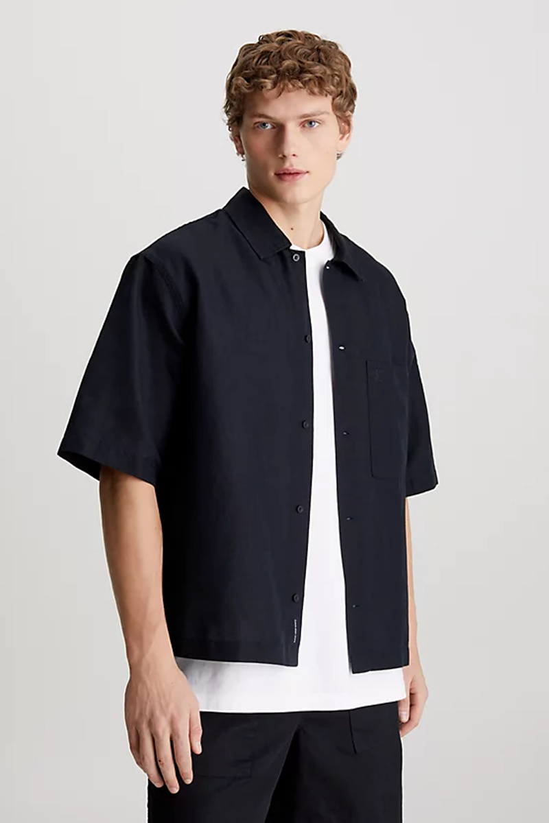 Calvin Klein Πουκάμισο Linen Cotton Short Sleeve Ανδρικό Μαύρο