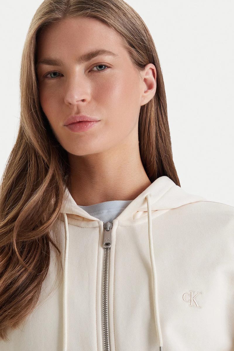 Calvin Klein Ζακέτα Cropped Monogram Zip-Up Hoodie Γυναικείο Κρεμ