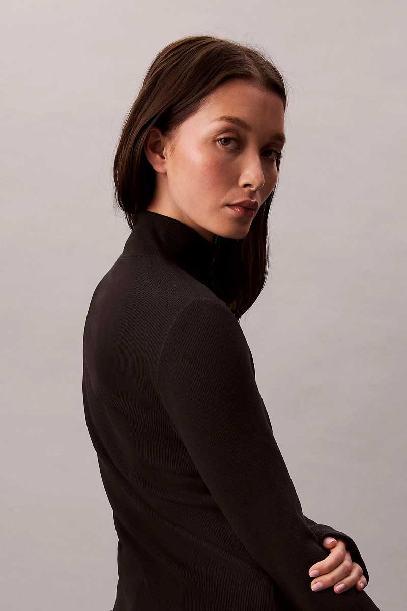 Calvin Klein Ζιβάγκο Ribbed Cotton Top Γυναικείο Μαύρο