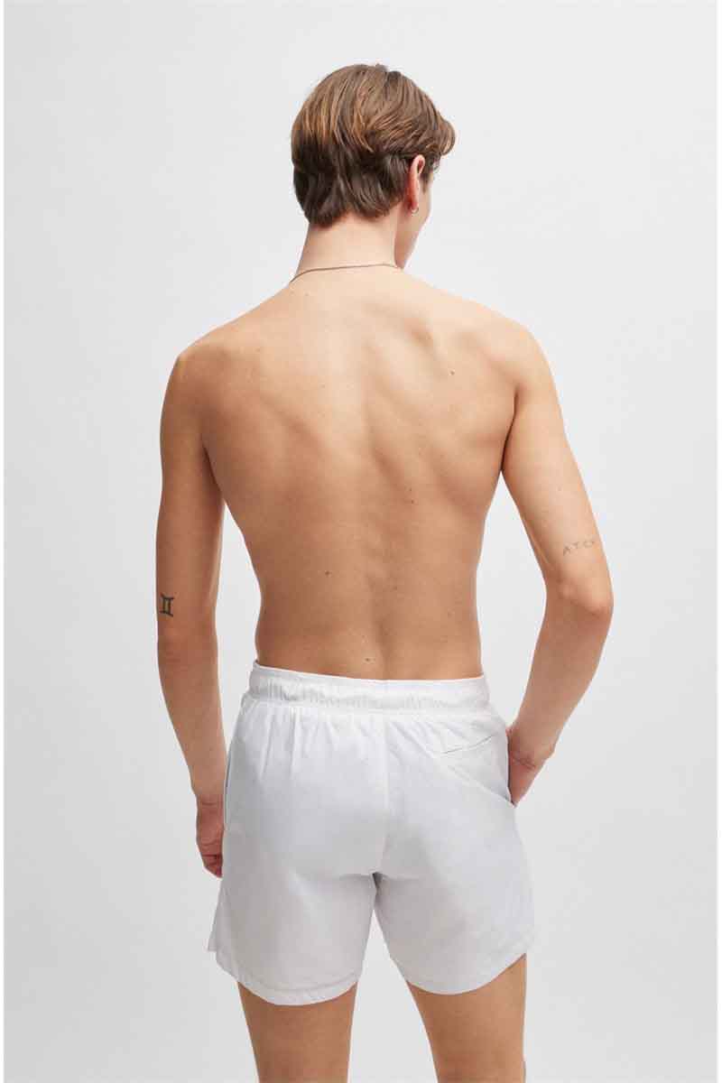 Ανδρικό μαγιό σε στυλ σορτς της εταιρίας Hugo Boss σε λευκό χρώμα, ιδανική επιλογή για το καλοκαίρι.