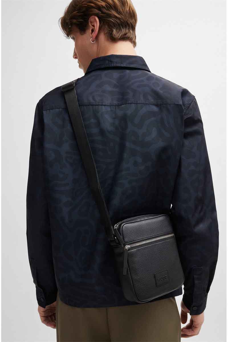 - Ανδρική τσάντα της εταιρείας Hugo Boss σε μαύρο χρώμα.