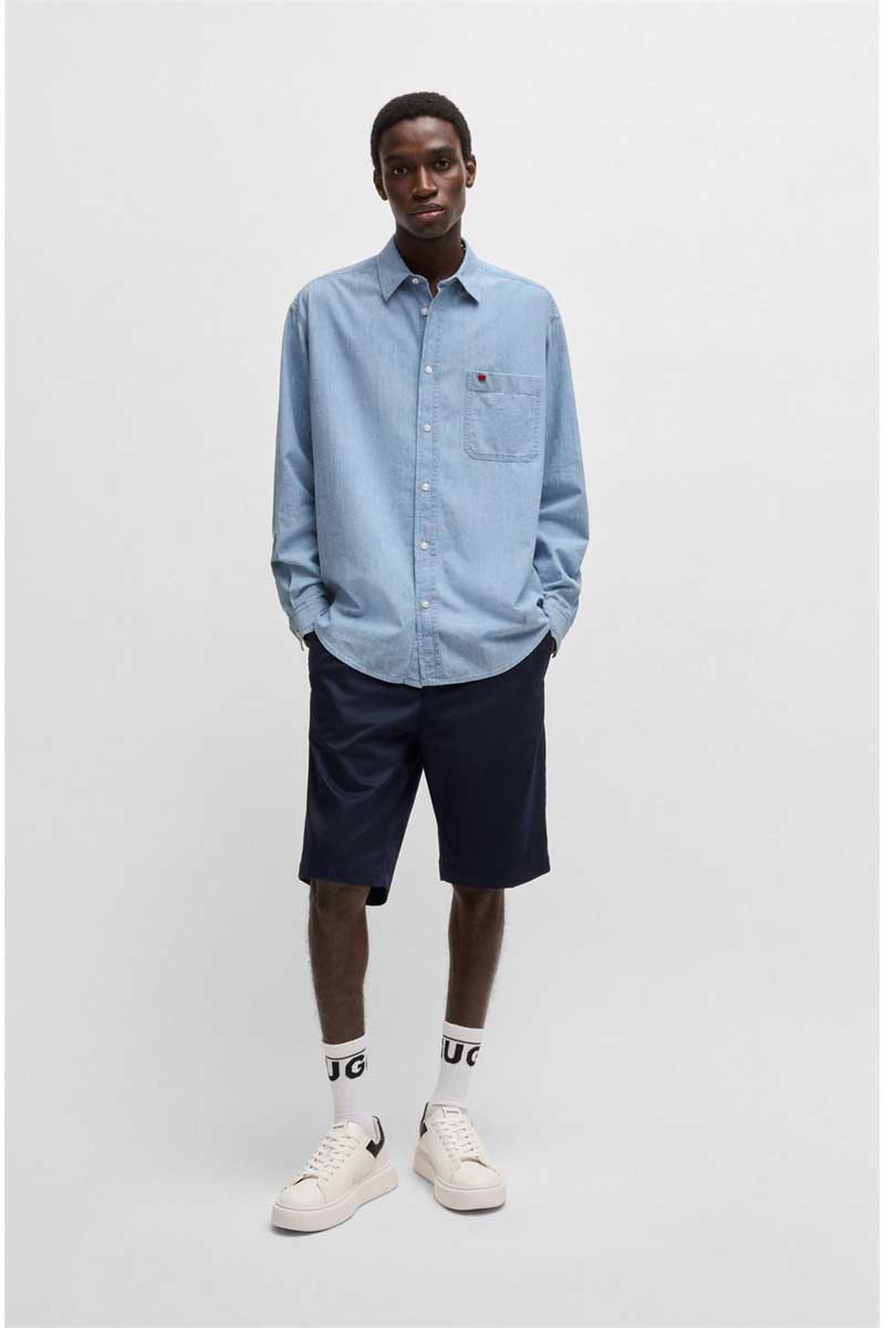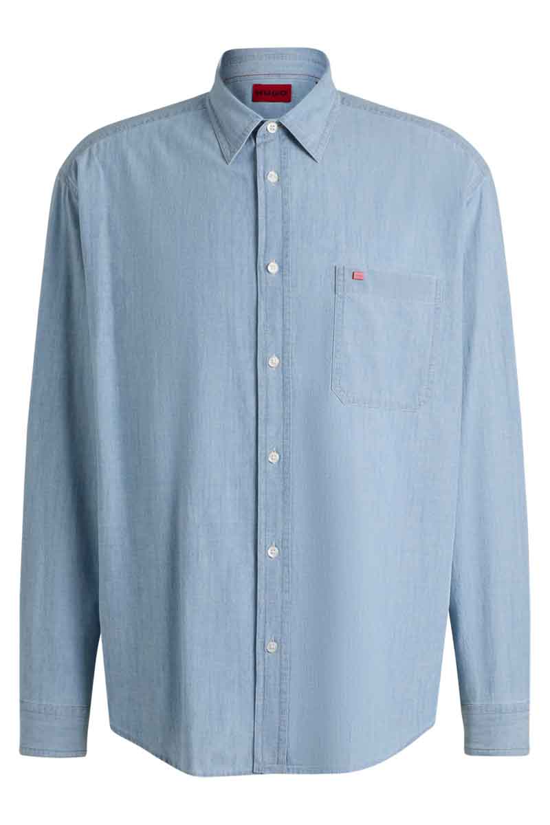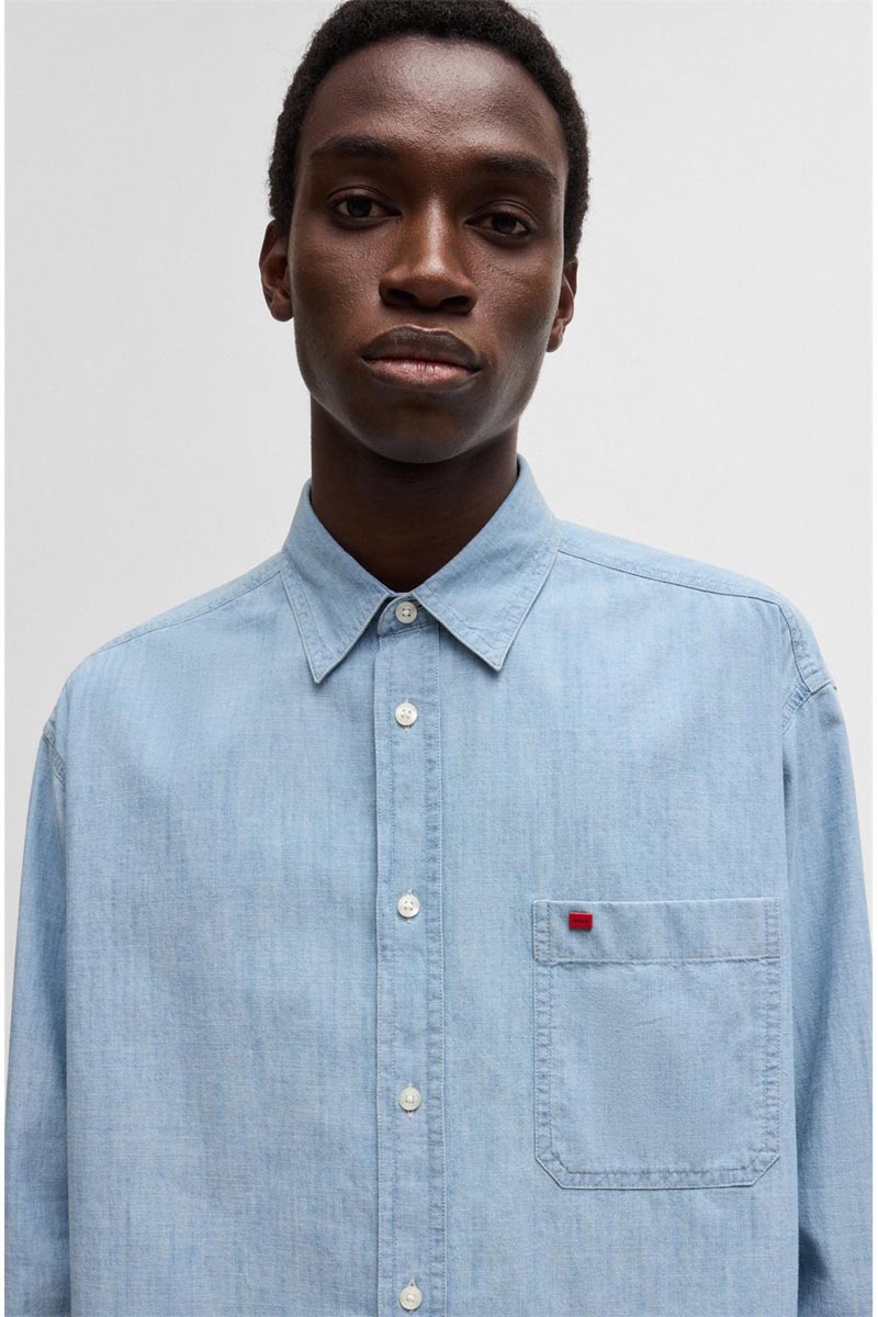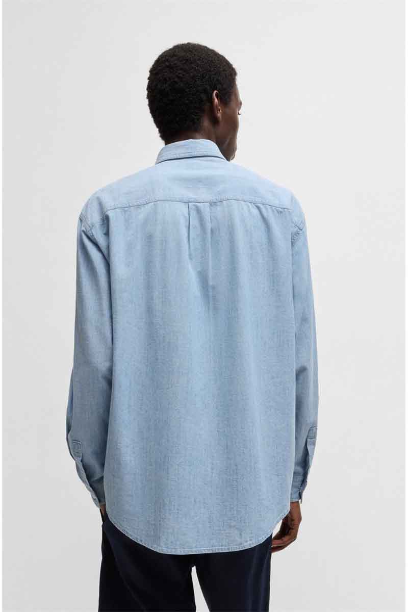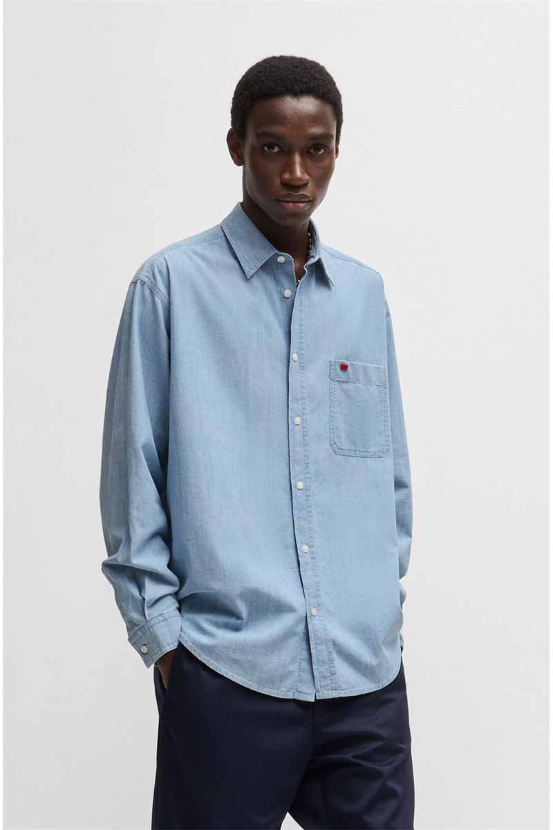 Hugo Πουκάμισο Μακρυμάνικo Τζιν σε Φαρδιά Γραμμή Ανδρικό Denim