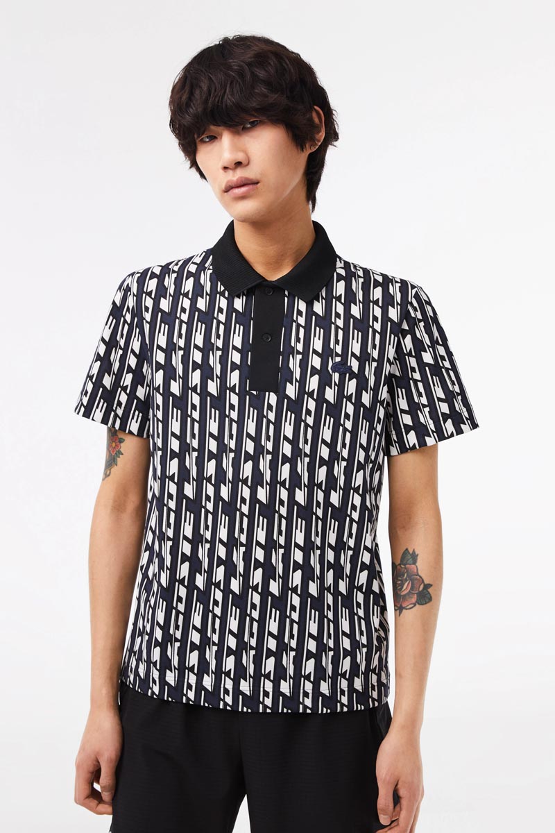 - The inventor of polo shirts since 1933, Lacoste presents this special edition of the Lacoste Active Movement, the two-tone printed version. Flexible, lightweight and breathable: the Lacoste Active Movement lives up to all its promises. In this new version, a contrasting button placket and a racing-inspired graphic give the polo a unique touch.