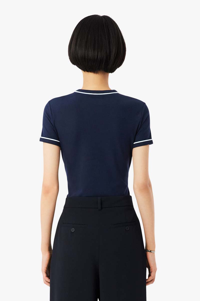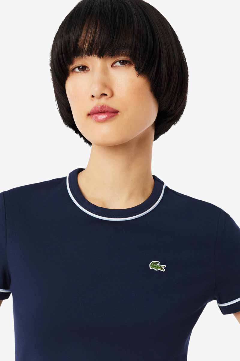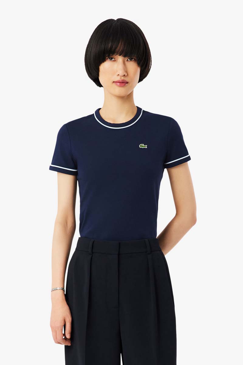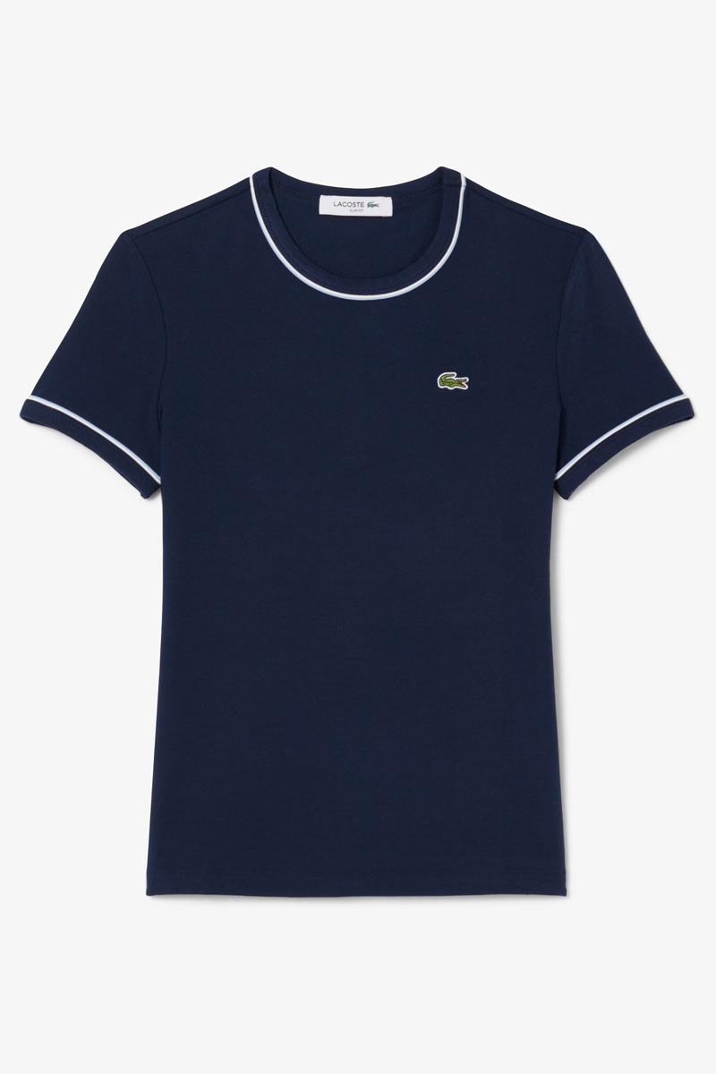 Lacoste T-Shirt Contrast Trim Jersey Γυναικείο Μπλε
