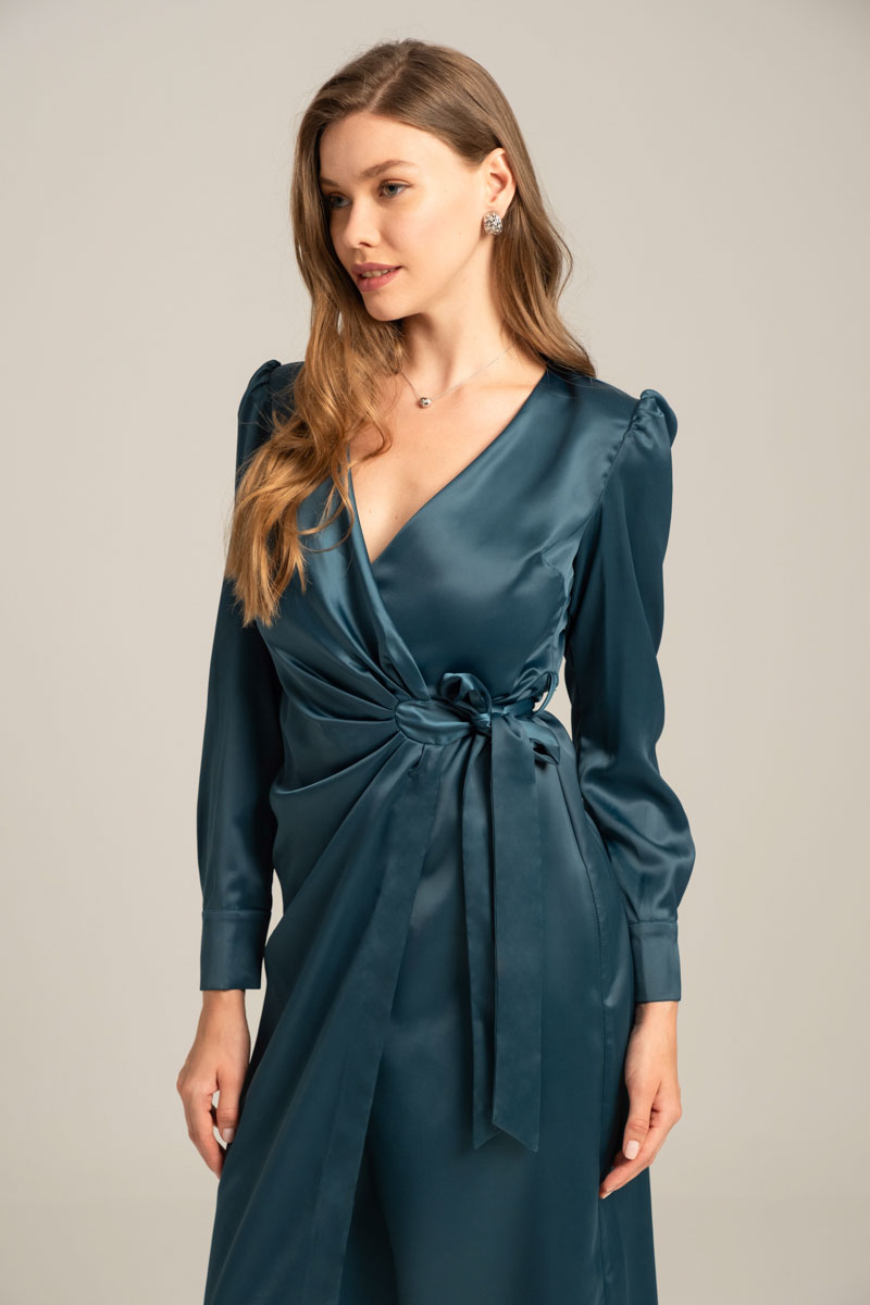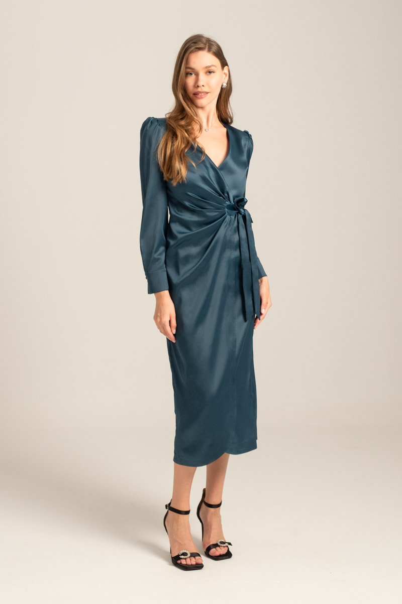 Mind Matter Φόρεμα Phoebe Μίντι Κρουαζέ Γυναικείο Πετρόλ