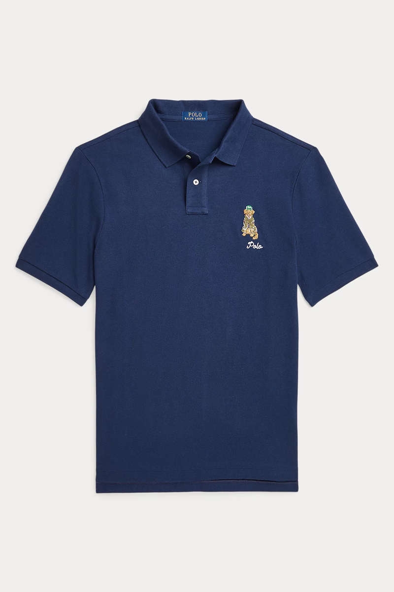 - This relaxed version is made with our highly breathable cotton mesh and embroidered with a dog playfully wearing Polo attire.