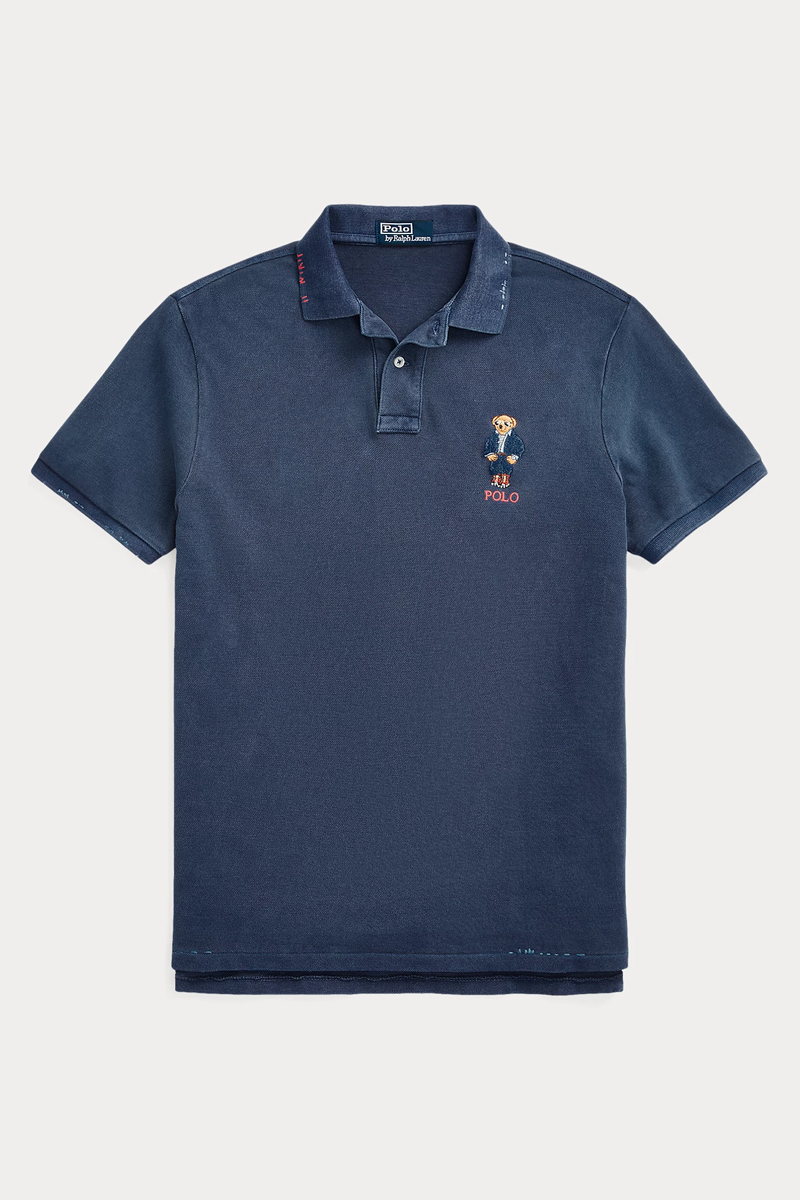 Ralph Lauren Μπλούζα Custom Slim Polo Bear Mesh Polo Ανδρικό Μπλε