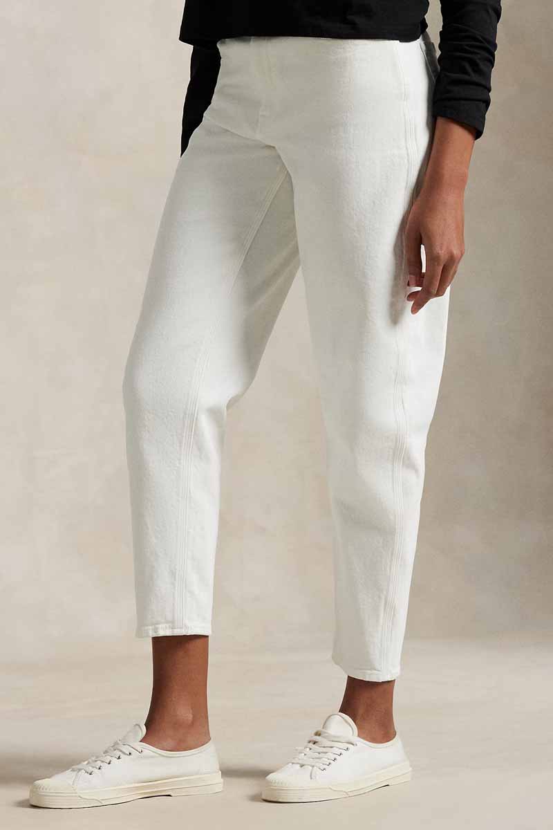 - Crafted from Japanese right-hand twill, this version of our Curved Tapered jean features a bright white wash with subtle slub character and a hint of stretch.