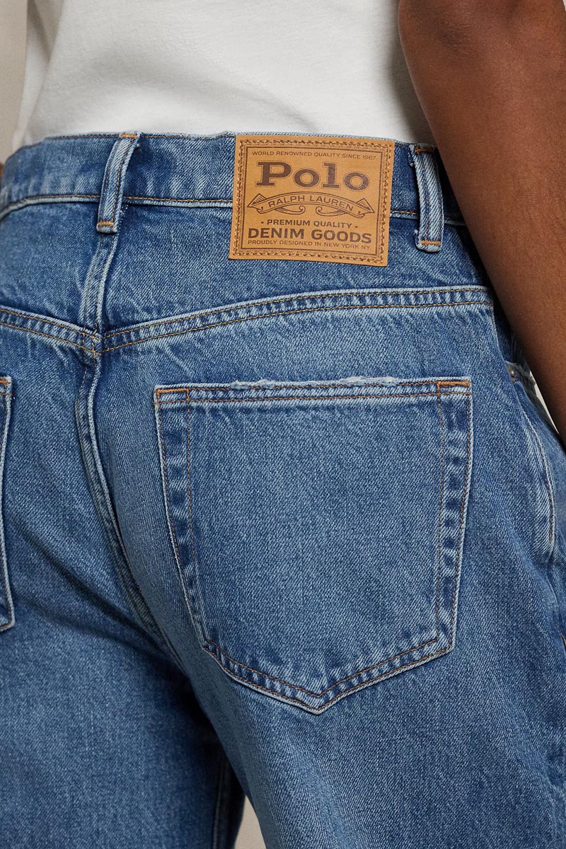 - Five-pocket styling with signature “P.R.L. 67”-engraved metal rivets.