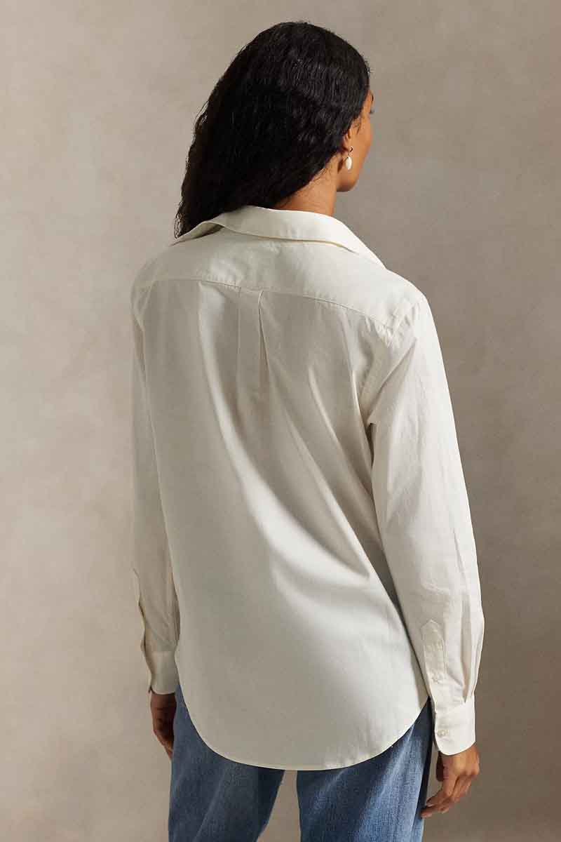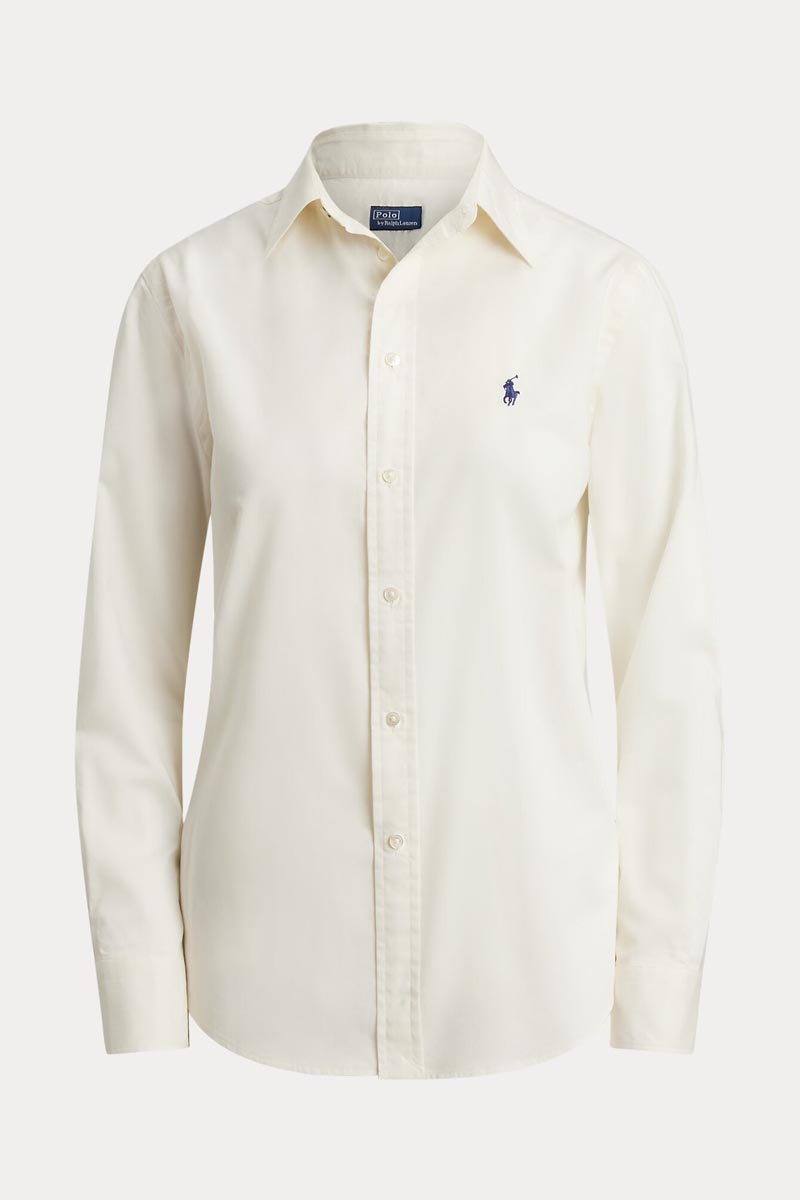 - Classic in fit and style, this cotton twill shirt is detailed with shell buttons and our signature embroidered Pony on the left chest.