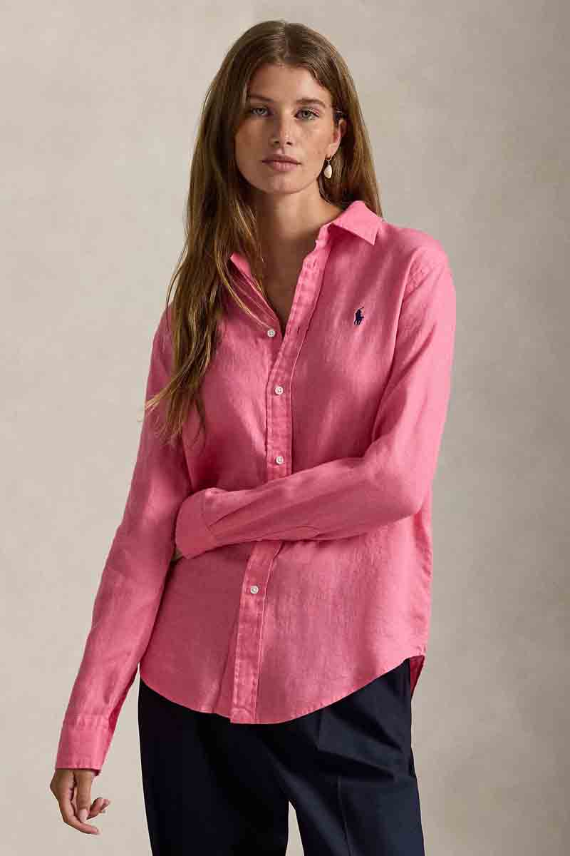 Ralph Lauren Πουκάμισο Classic Fit Linen Γυναικείο Ροζ