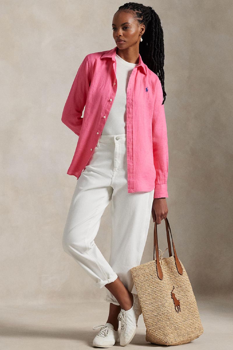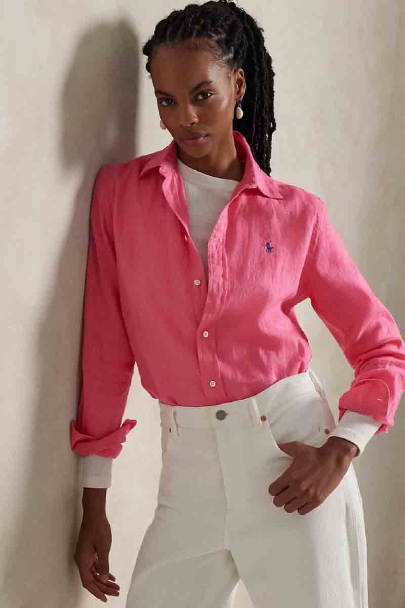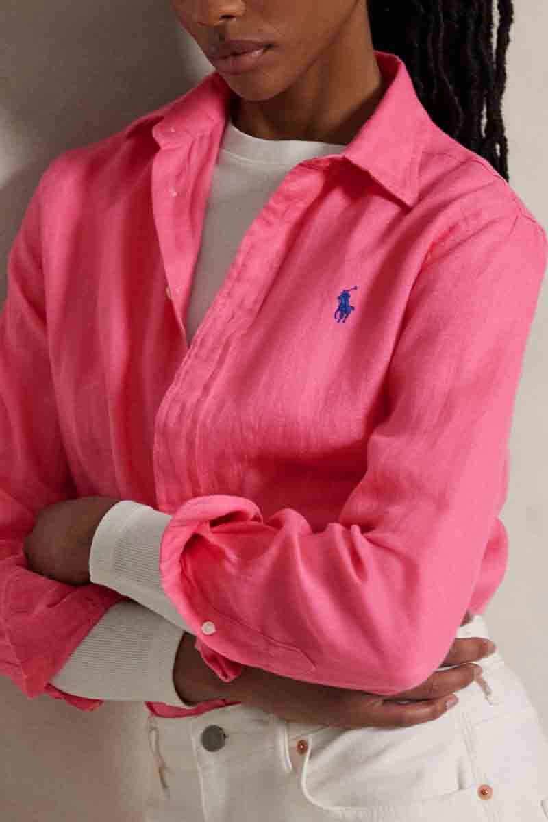 Ralph Lauren Πουκάμισο Classic Fit Linen Γυναικείο Ροζ