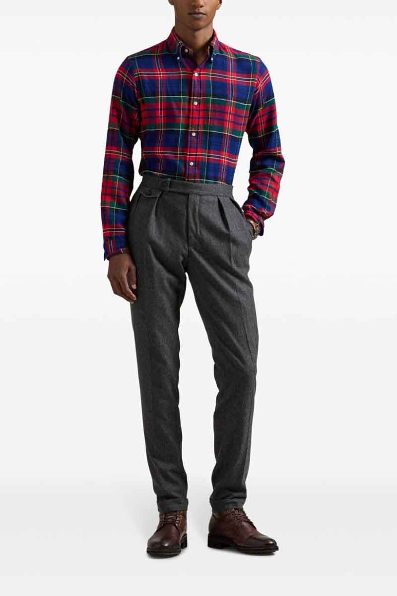 - This plaid shirt is crafted with peached cotton twill and finished with our signature embroidered Pony.