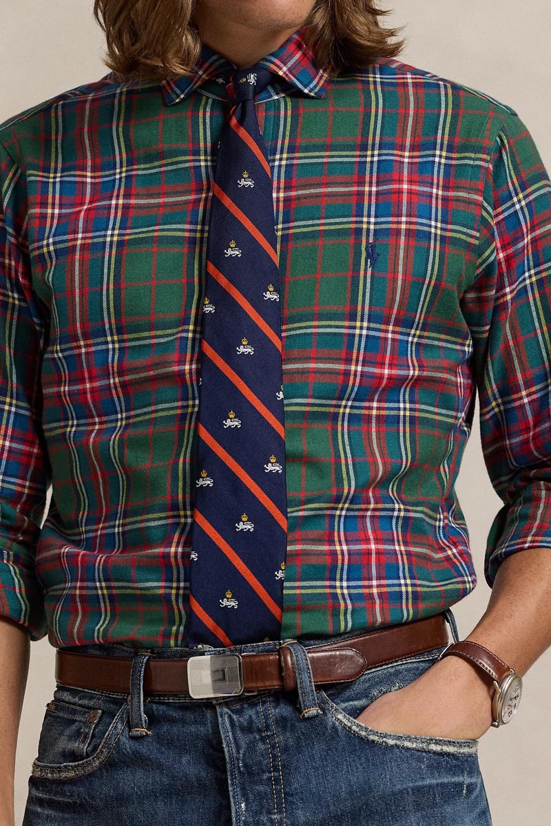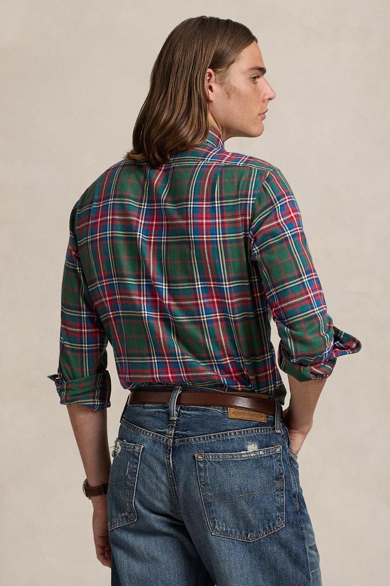 - This plaid shirt is crafted with peached cotton twill and finished with our signature embroidered Pony.
