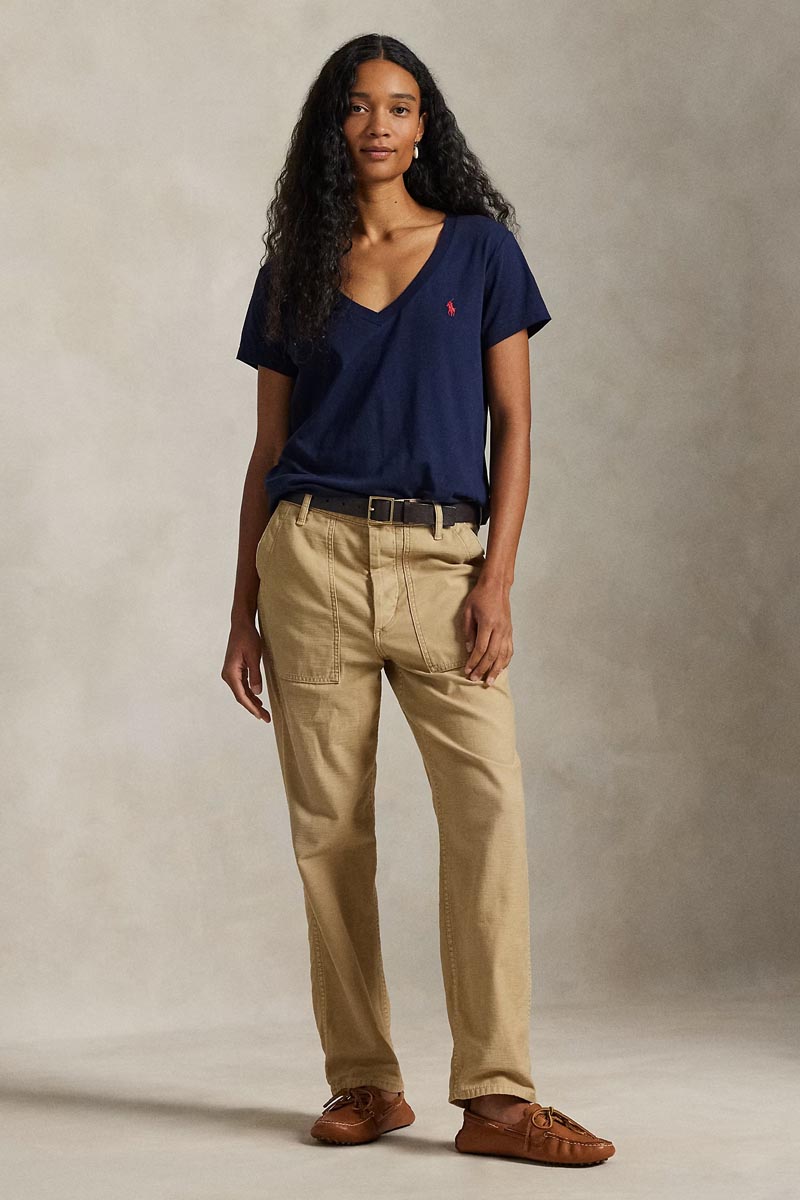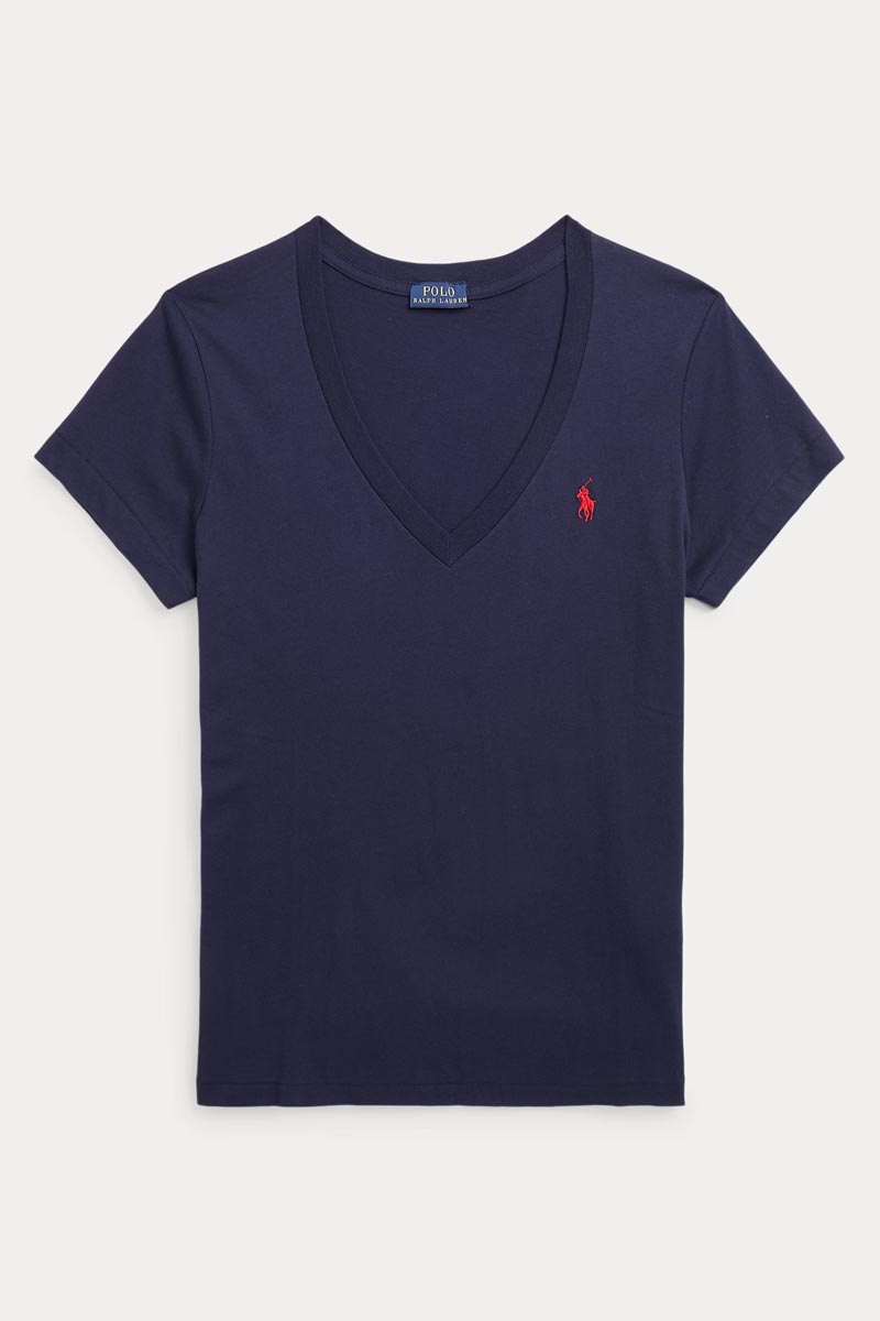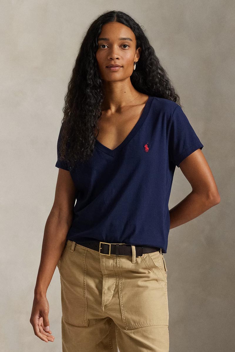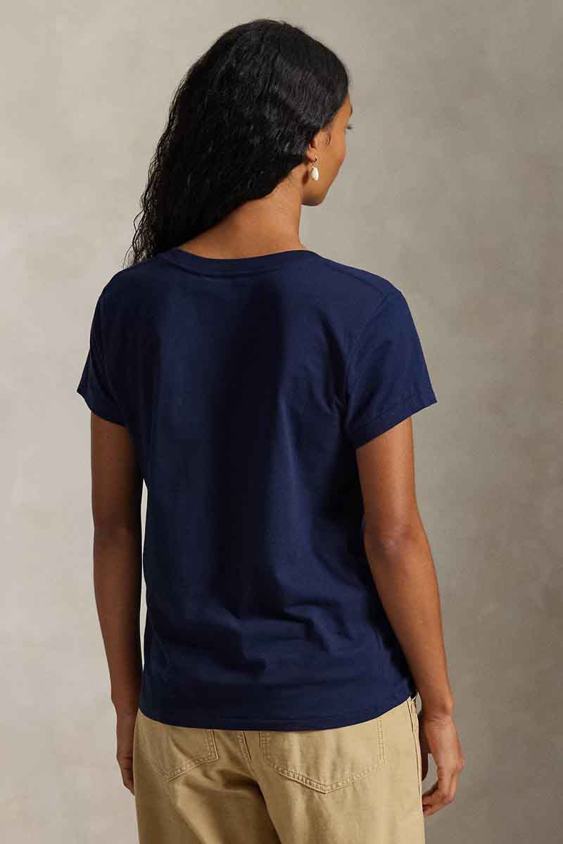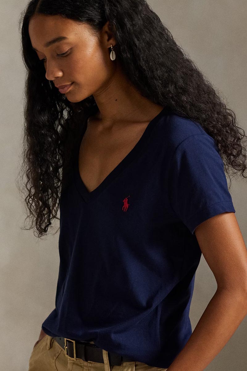 Ralph Lauren T-Shirt Cotton Jersey V-Neck Γυναικείο Μπλε