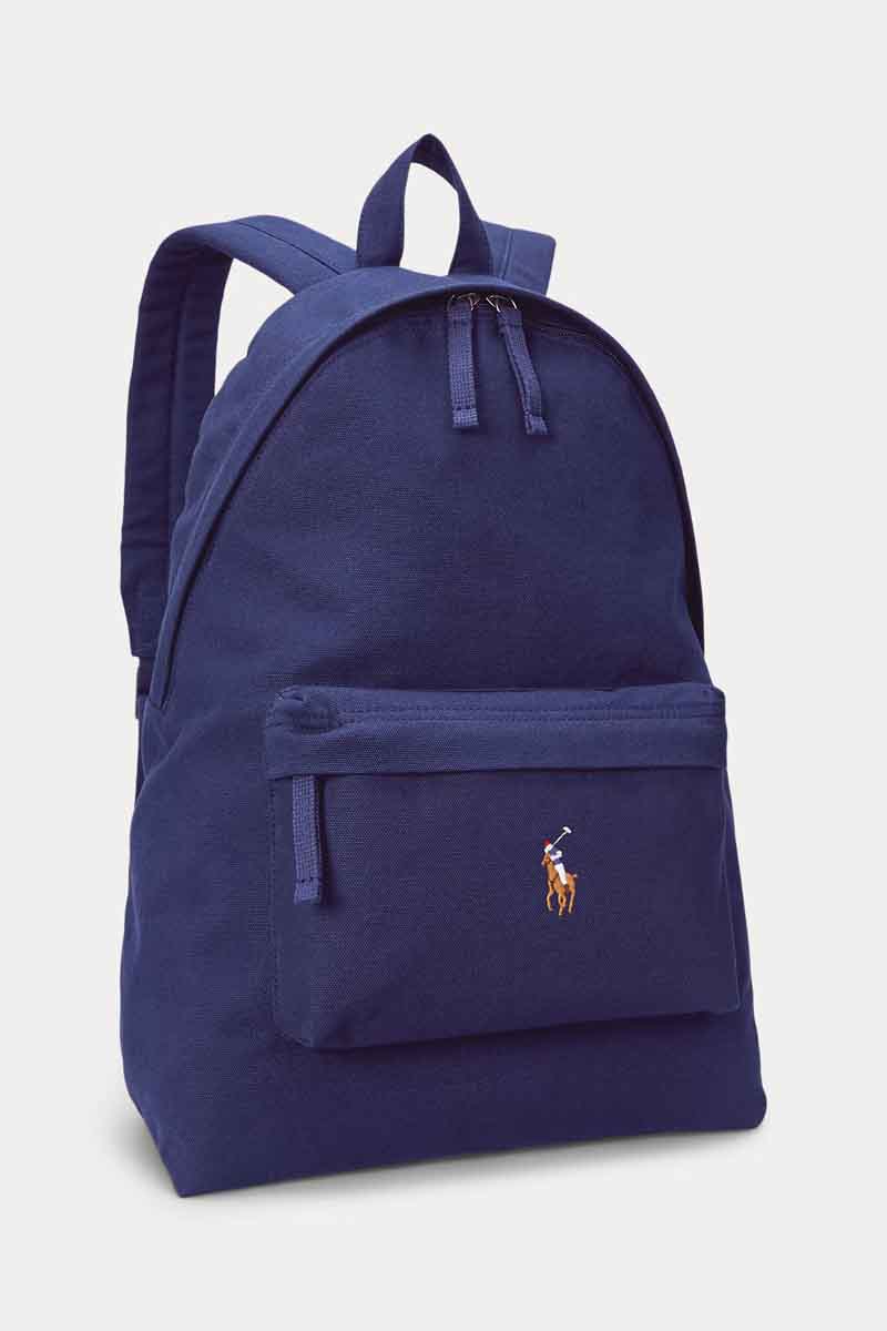 - Our multicoloured signature embroidered Pony adorns this canvas backpack, which features a padded interior pocket to help protect your laptop or tablet.