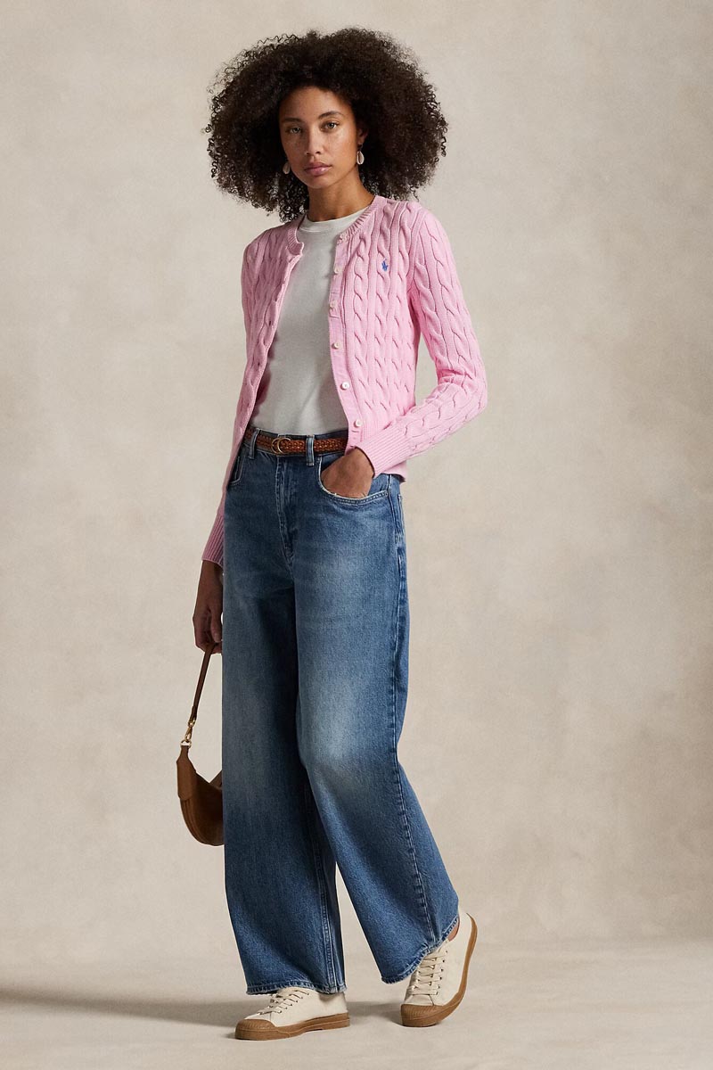 Ralph Lauren Ζακέτα Cable-Knit Cotton Crewneck Γυναικείο Ροζ