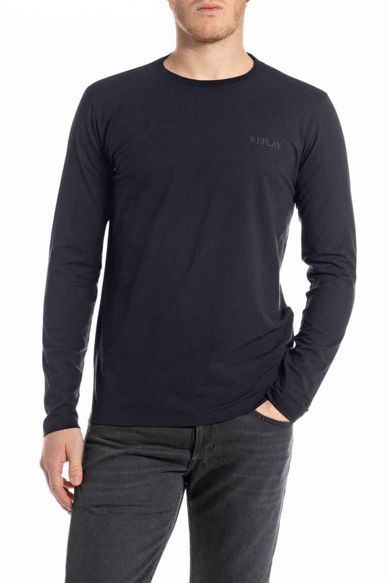 Replay Ανδρικό T-shirt Μακρύ Μανίκι Μπλε Σκούρο
