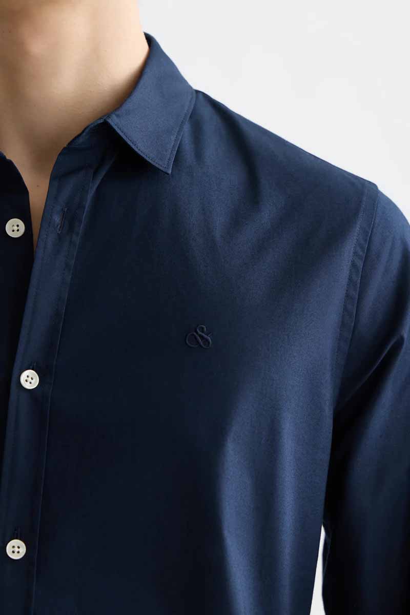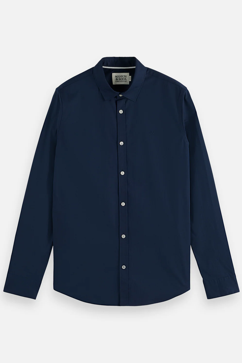 Scotch & Soda Πουκάμισο Core Poplin Solid Ανδρικό Μπλε