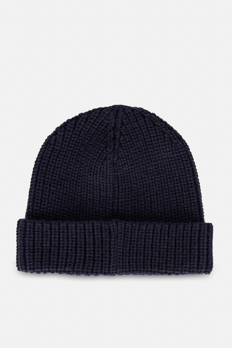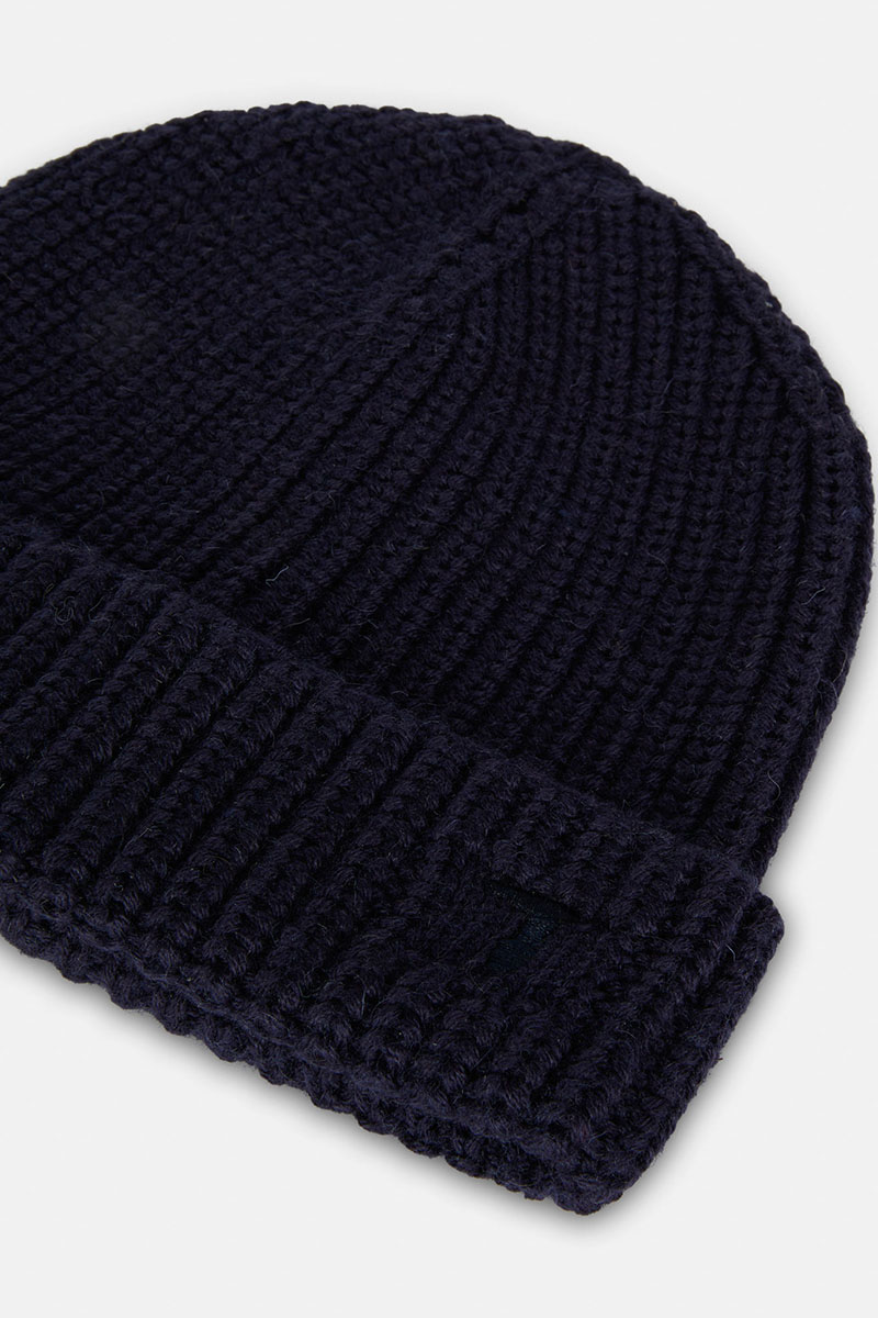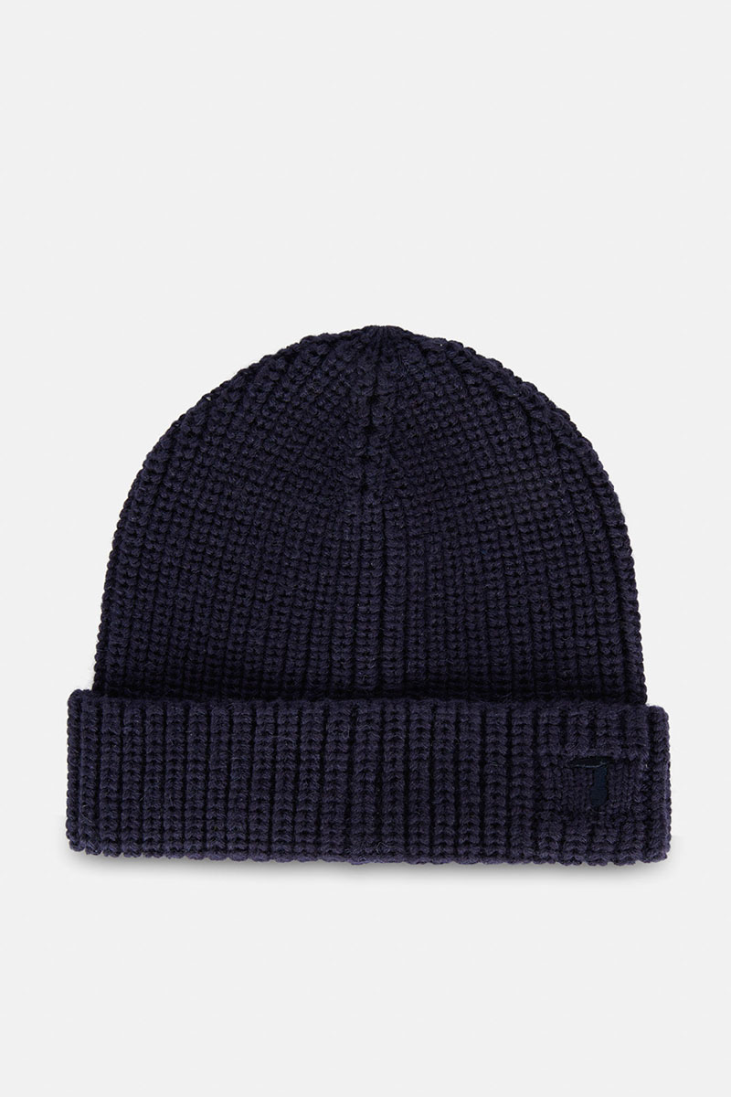 - A solid-colour hat in a soft wool blend. The accessory features a ribbed turn-up trim and the mini tonal Trussardi Levriero logo embroidery.
