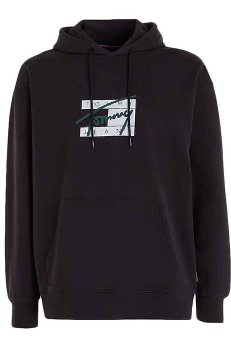 Tommy Jeans Signature Ανδρικό Φούτερ με Κουκούλα Μαύρο